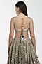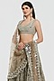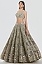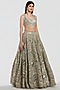 Abhinav Mishra presents a champagne gold lehenga crafted in net base with mirror, zari and gota work. It is paired with a blouse and a dupatta. Adorn this refined silhouette with diamond accents, dewy sculpted makeup and a graceful braided hair style for understated sangeet elegance.
