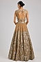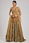 Featuring a gold lehenga in net base with mirror, zari, dori thread and sequins embroidery. It is paired with a blouse and a dupatta. Accentuate it with dangler earrings and block heels for a wedding or sangeet ceremonies.