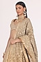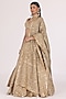 Featuring a golden beige lehenga in tissue base with gota, zari and mirror work. It is paired with a net blouse and a tissue dupatta. Accentuate it with statement kundan jewellery and heels for a wedding, sangeet or engagement ceremony.