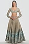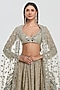 Abhinav Mishra presents an ivory and glacier colored lehenga crafted in net base with mirror, zari and lurex thread work. It is paired with a blouse and a dupatta. Adorn this refined silhouette with heirloom polki accents, dewy sculpted makeup and a graceful braided hair style for understated sangeet elegance.