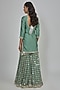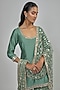 Featuring a jade green kurta in chanderi base with mirror, zari and sequins embroidery. It is paired with net sharara and a net dupatta. Accentuate it with dangler earrings and block heels for a wedding or mehendi ceremonies.