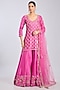 Featuring a maharani pink kurta in chanderi base. It is paired with sharara pants and a net dupatta. Accentuate it with statement jewellery and heels for a festive occasion, cultural event, wedding, sangeet or engagement ceremony.