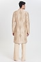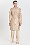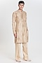Featuring a beige kurta in chanderi base. It is paired with pants. Style it with mojaris for a festive occasion, cultural event, wedding or engagement ceremony.