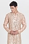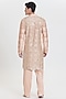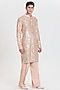 Featuring a peach kurta in chanderi base. It is paired with pants. Style it with mojaris for a festive occasion, cultural event, wedding or engagement ceremony.