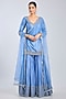 Featuring a metallic blue kurta in chanderi base. It is paired with sharara pants and a net dupatta. Accentuate it with statement jewellery and heels for a festive occasion, cultural event, wedding, sangeet or engagement ceremony.