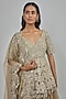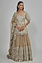Featuring a moon grey lehenga in organza base. It is paired with a net peplum and a dupatta. Accentuate it with dangler earrings and block heels for a wedding or sangeet ceremonies.