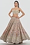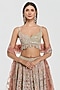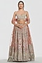 Abhinav Mishra presents a multi-colored lehenga crafted in chanderi base with mirror, zari and dori thread work. It is paired with a blouse and a net dupatta. Adorn this refined silhouette with heirloom polki accents, dewy sculpted makeup and a graceful braided hair style for understated sangeet elegance or a bridal look.