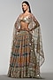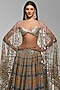 Abhinav Mishra presents a multi-colored lehenga crafted in chanderi base with mirror, zari and lurex thread work. It is paired with a net blouse and a net dupatta. Adorn this refined silhouette with heirloom polki accents, dewy sculpted makeup and a graceful braided hair style for understated sangeet elegance.