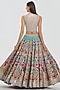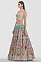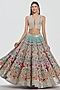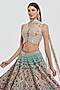 Abhinav Mishra presents a multi-colored lehenga crafted in chanderi base with mirror and dori thread work. It is paired with a blouse and a dupatta. Adorn this refined silhouette with polki accents, dewy sculpted makeup and a graceful braided hair style for understated sangeet elegance.