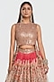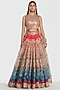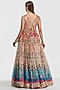 Abhinav Mishra presents a multi-colored lehenga crafted in organza base with mirror, zari and dori thread work. It is paired with a net blouse. Adorn this refined silhouette with heirloom polki accents, dewy sculpted makeup and a graceful braided hair style for understated sangeet elegance.