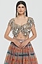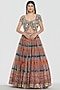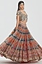 Abhinav Mishra presents a multi-colored lehenga crafted in organza base with mirror, sequins, zari and dori thread work. It is paired with a net blouse. Adorn this refined silhouette with heirloom polki accents, dewy sculpted makeup and a graceful braided hair style for understated sangeet elegance.
