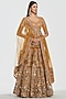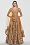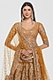 Abhinav Mishra presents a mustard yellow lehenga crafted in net base with mirror, zari and gota work. It is paired with a peplum and a dupatta. Adorn this refined silhouette with polki accents, dewy sculpted makeup and a graceful braided hair style for understated haldi elegance.