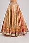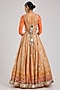 Featuring an orange lehenga in chanderi base with gota, zari and mirror embroidery. It is paired with a chanderi blouse and a net dupatta. Style it with polki jewelry and wedges for weddings, haldi or sangeet ceremonies.