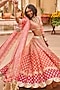 Featuring a peah and orange lehenga in organza base with print. It is paired with a chanderi blouse and a dupatta. Accentuate it with statement earrings and heels for a wedding or engagement ceremony.
