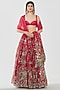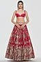 Abhinav Mishra presents a rani pink lehenga crafted in chanderi base with mirror, zari and dori thread work. It is paired with a blouse and an organza dupatta. Adorn this refined silhouette with heirloom polki accents, dewy sculpted makeup and a graceful braided hair style for understated sangeet elegance or a bridal look.