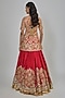 Featuring a red lehenga in chanderi base with gota, zari and mirror embroidery. It is paired with a chanderi peplum and an organza dupatta. Accentuate it with dangler earrings and block heels for a wedding, bridal look or engagement ceremonies.