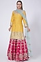 Featuring a yellow kurta in raw silk base with mirror embellishments. It is paired with contrasting red sharara pants and a net dupatta.