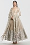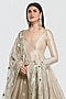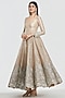 Abhinav Mishra presents a rose gold anarkali crafted in tissue base with mirror, zari and lurex thread work. It is paired with churidar pants and a dupatta. Adorn this refined silhouette with heirloom polki accents, dewy sculpted makeup and a graceful braided hair style for understated engagement elegance.