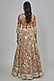 Featuring a rust orange lehenga in net base with mirror, zari, dori thread and sequins embroidery. It is paired with a chanderi blouse and a net dupatta. Accentuate it with dangler earrings and block heels for a bridal look, wedding or sangeet ceremonies.