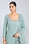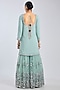Featuring a stone blue kurta in georgette base. It is paired with net sharara pants and a dupatta. Accentuate it with statement jewellery and heels for a festive occasion, cultural event, wedding, sangeet or engagement ceremony.