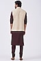 Featuring a beige bundi jacket in cotton silk base with resham badla embroidery. This contains one only piece.