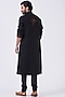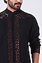 Featuring a black sherwani in cotton silk base with lurex applique embroidery. It is paired with matching churidar pants.