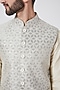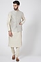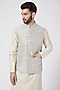 Featuring a light beige waistcoat in chanderi silk base with tonal resham and applique work. This contains only one piece.
