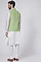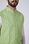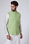 Featuring a lime waistcoat in cotton silk base with tonal resham embroidery. Perfect wear for a festive occasion or mehendi ceremony.