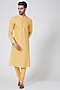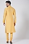 Featuring a mango yellow kurta in cotton silk base with tonal resham embroidery. It is paired with churidar pants. Perfect for any festive occasion.