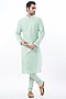 Featuring a mint kurta in cotton silk base with kantha work. It is paired with matching churidar pants.