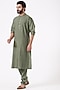 Featuring an olive green tonal pintucked kurta in cotton silk base. It is paired with churidar pants. Perfect wear for festive occasions