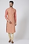 Featuring an orange kurta in cotton silk base with dori and butti work. It is paired with contrasting churidar pants.