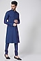 Featuring a royal blue kurta in cotton silk base with tonal pintucks and kantha embroidery. It is paired with matching churidar pants.