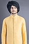 Featuring a yellow waistcoat in cotton silk base with tonal thread embroidery. It is paired with a matching kurta and beige churidar pants.