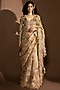 Gold Silk Chanderi Thread Embroidered Jacket Saree Set