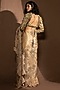 Featuring a gold saree in silk chanderi base with thread embroidery. It is paired with an embellished blouse and a shrug having embroidery. Accentuate with statement jewellery and heels for a wedding, sangeet or engagement ceremony.