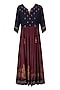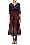 Maroon and Navy Block Printed and Hand Embroidered Kurta