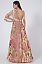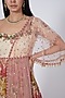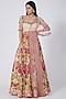 Featuring a beige anarkali in georgette satin tulle base with floral print and an attached draped dupatta. This contains only one piece.