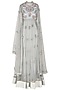 Sea Blue Embroidered Cape Style Anarkali Set