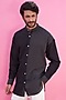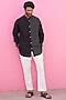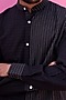 Featuring a black shirt in cotton base with kantha stripe panel, mandarin collar, drop shoulder and shell buttons detailing. This contains only one piece.