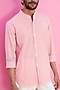 Featuring a pink shirt in cotton base with mandarin collar, curved hemline, shell buttons and gingham checks print. Style it with pants for casual wear, exuding charm and elegance.