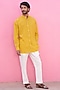 Featuring a yellow shirt in cotton base with kantha stripe, panel, mandarin collar, drop shoulder, and shell buttons detailing. This contains only one piece.