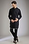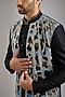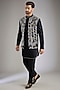 Featuring a black indowestern silk base. It is paired with a kurta and pants. Style it with a pair of loafers for a wedding, engagement or sangeet ceremony.