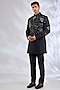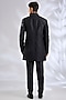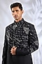 Featuring a black indowestern in silk base. It is paired with a kurta and pants. Accentuate it with pair of loafers and a bracelet for a wedding, sangeet or engagement ceremony.