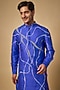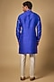 Featuring a blue kurta in raw silk base. It is paired with pants. Style it with a watch and a pair of kolhapuris for a festive occasion or sangeet ceremony.