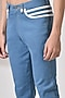 Featuring light blue jeans in cotton denim base with white stripes and front pockets.