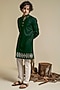 Featuring an olive green kurta in terry rayon base with hand embroidery. It is paired with cotton modal satin pants. Perfect wear for festive occasions