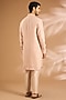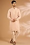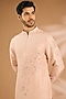 Featuring a peach kurta in silk base. It is paired with pants. Style it up with kolhapuri sandals and a stole for a festive occasion, wedding or engagement ceremony.