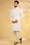 Featuring a white kurta in cotton silk base. It is paired with pants. Style it with a pair of kolhapuris and a bracelet for festive dinners, daytime functions or pooja ceremony.
