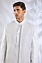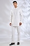 Featuring a white indowestern in silk base. It is paired with a kurta and pants. Accentuate it with pair of loafers and a bracelet for a wedding, sangeet or engagement ceremony.